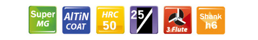型號Code | 直徑DC | 刃長APMX | 全長OAL | 柄徑DCON | 刃數No.F | 在庫Stock |