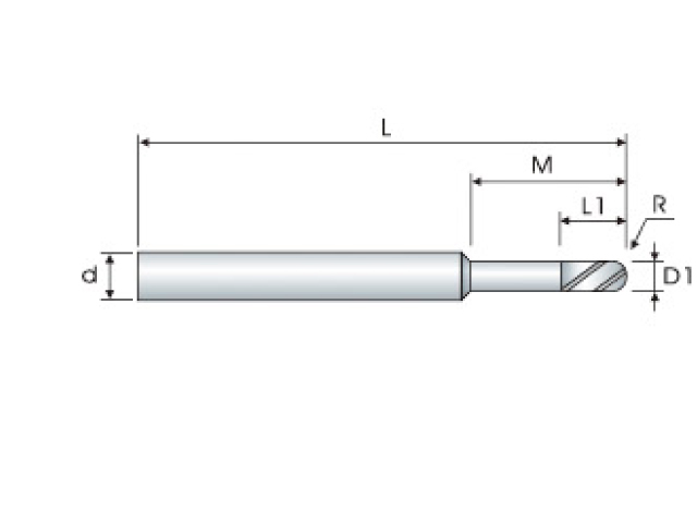 型號Code | 球頭RBall Radius | 直徑DC | 刃長APMX | 全長OAL | 有效長UNL | 柄徑DCON | 刃數No.F | 在庫Stock |