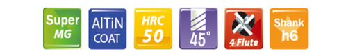型號Code | 直徑DC | 刃長APMX | 全長OAL | 柄徑DCON | 刃數No.F | 在庫Stock |
